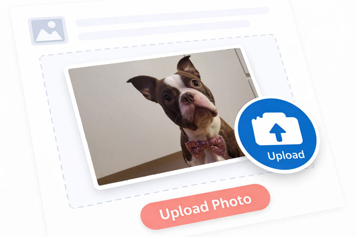 Begin your portraitUpload a favourite photograph that captures your companion’s character and expression. This becomes the reference for the artwork.