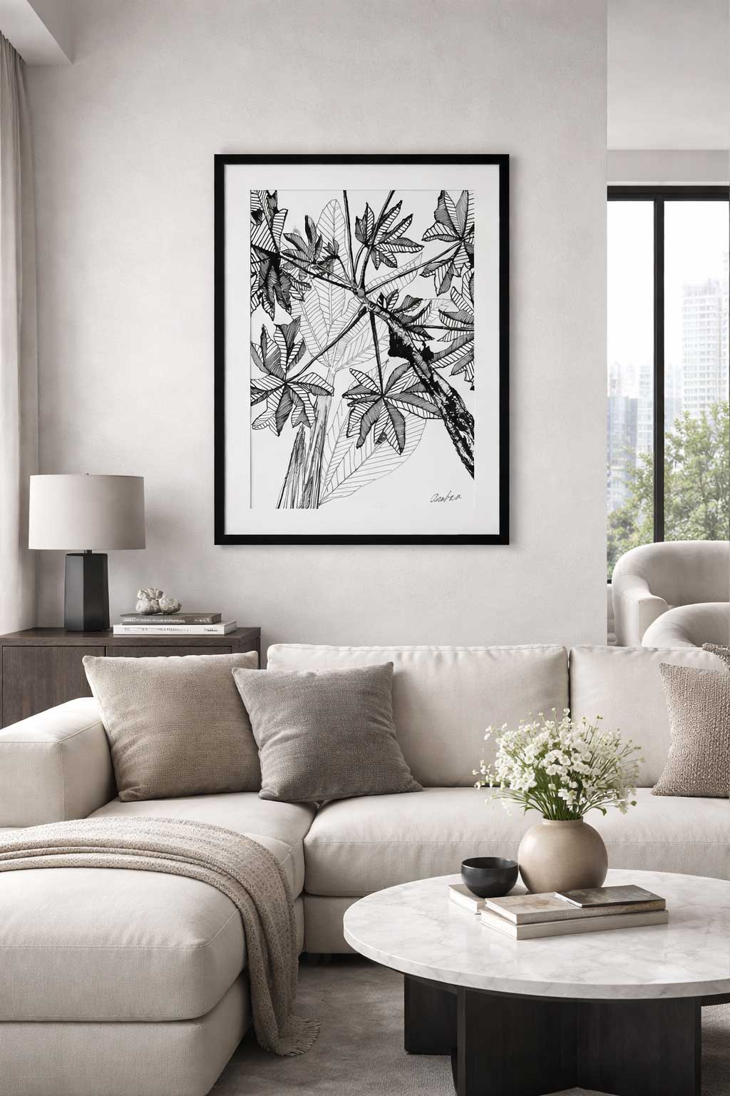 Framed artworks are finished using high quality frames in white, black, or natural, each paired with an off white mount for a clean, balanced, and timeless presentation.