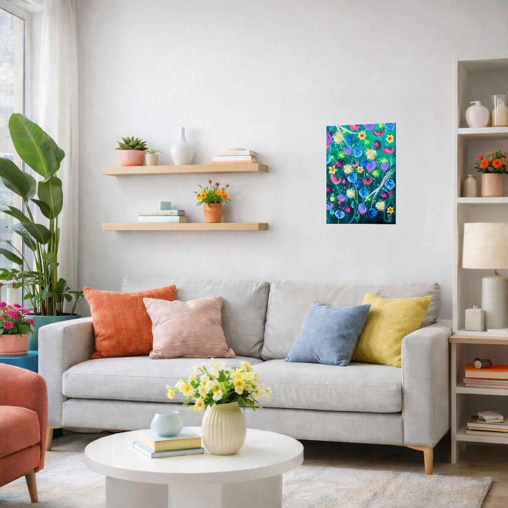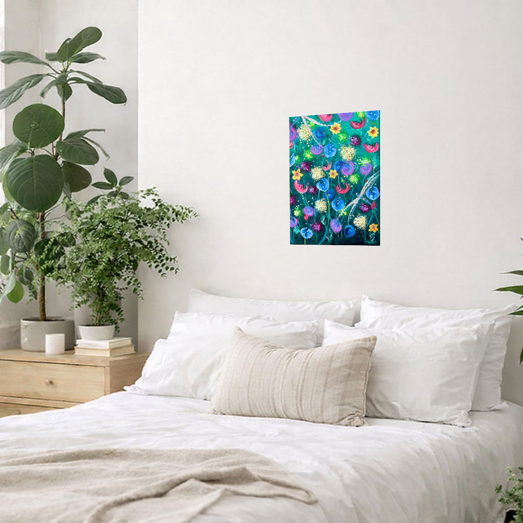 This piece came from a need to focus on what was still growing, still opening, still quietly present, even when so much felt paused. The colours and forms were built slowly, layer by layer, allowing the painting to unfold in its own time.