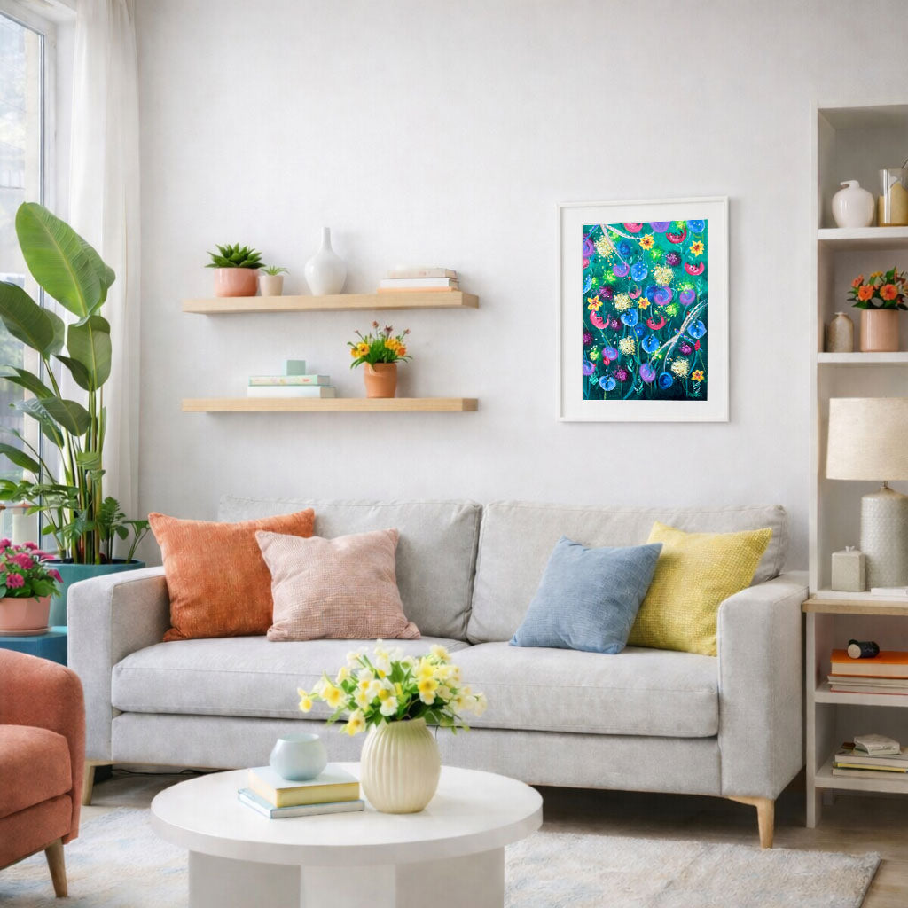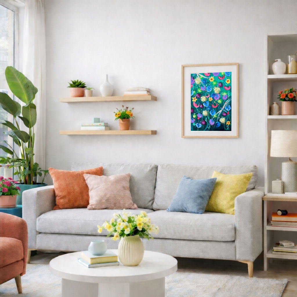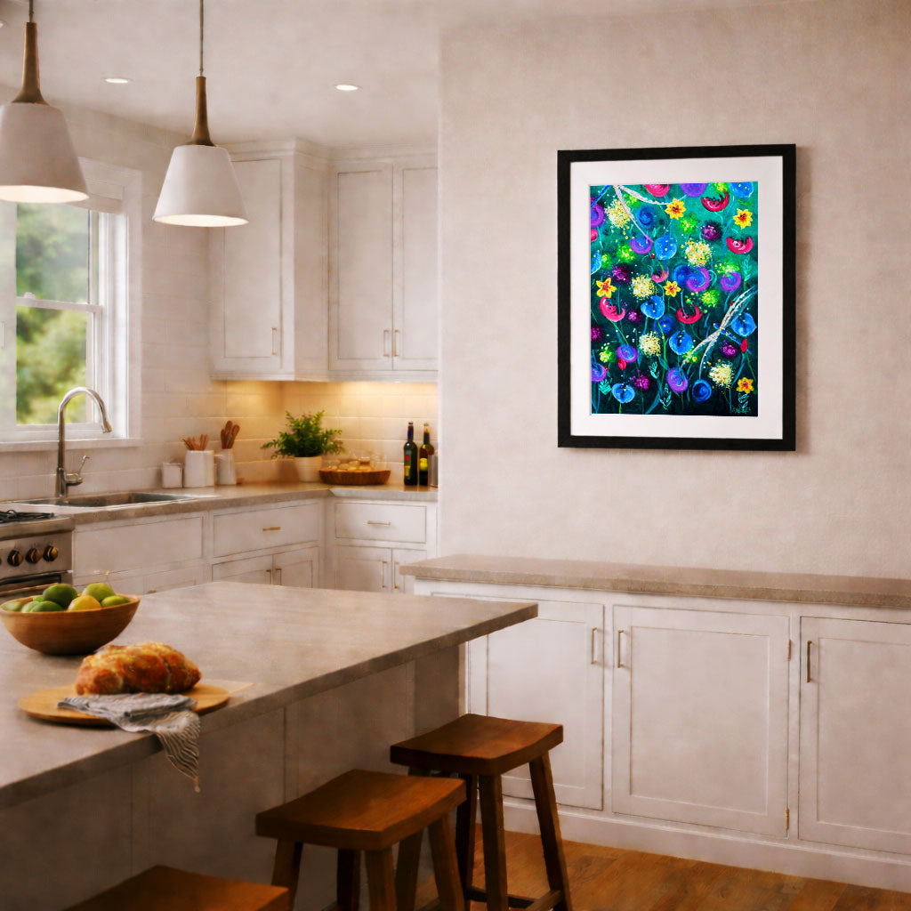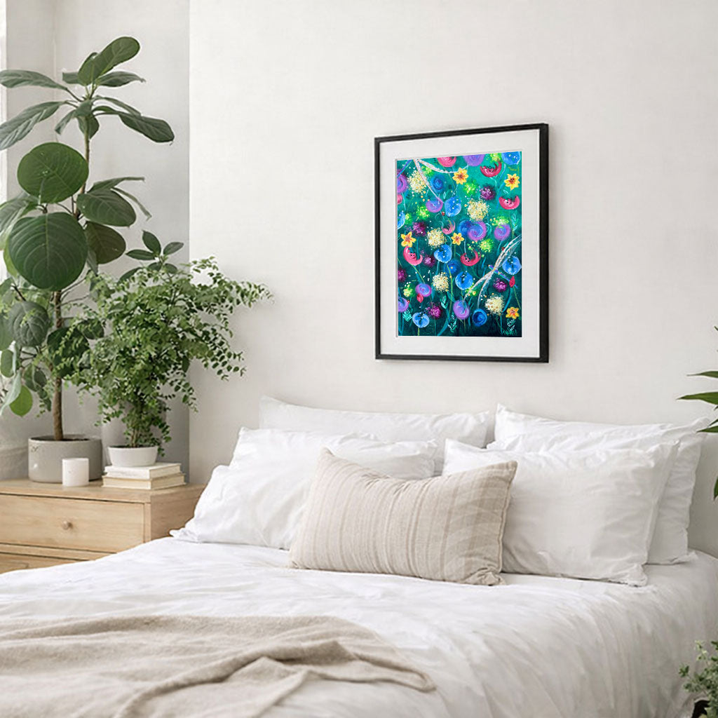 Framed artworks include an off white mount and a white, black, or natural frame, finished to a clean, gallery style standard.